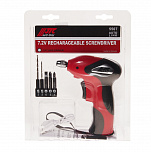 Максимальный крутящий момент 14,7 Н/м. Емкость аккумулятора 1 А/ч. Обороты 265 об/мин. Лёгкий вес и прорезиненная ручка. Аккумуляторная отвертка поставляется в наборе с битами, сверлами и USB проводом. Встроенный светодиодный фонарь для работы при низкой освещенности. Зарядка устройства происходит за 2,5 часа.