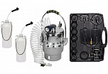 Приспособление для прокачки тормозов с пневматическим приводом. Емкость 5л. Подходит как для прокачки тормозной системы, так и для прокачки гидравлической системы привода сцепления. В комплекте специальных адаптеров - 13 шт.