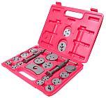 Адаптеры с положительной и отрицательной резьбой для различных моделей предупреждают повреждение поршней и сальников. Имеет два привода с правосторонней и левосторонней резьбой для различных марок автомобилей. Общее количество предметов в комплекте: 21 шт.