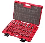 Набор головок и вставок торцевых в чемодане 96 предметов. В наборе: головки 1/4 (6РТ), головки глубокие 1/4 (6РТ), головки 1/2 (6РТ), головки глубокие 1/2 (6РТ), трещотка 1/4", удлинитель 1/4", вороток с плавающей головкой 1/4", кардан 1/4", вороток-отвертка, удлинитель 1/4", трещотка 1/2", удлинитель 1/2". свечная головка 1/2" 14 мм, свечная головка 1/2" 16 мм, кардан 1/2", держатель для бит 5/16", переходник 3/8 (F)х1/2(М), головки с насадкой 1/4 (биты S2, длина 37 мм.), биты 5/6" (S2, длина 30 мм.)