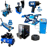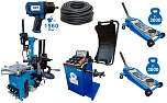 Комплект: шиномонтажный станок TS-21 для дисков: внешний 11÷20” + пистолет с манометром для подкачки шин + монтажка + пластиковые накладки на зажимные кулачки + регулятор давления с влагоотделителем и манометром. + TS-500 балансировочный станок с автозапуском, для колес легковых автомобилей и легких грузовиков, диаметр диска с резиной до 760 мм. размеры диска: ширина 3"–9” (76-228 мм), диаметр диска 10"–21” (254-533 мм). + кожух защитный + клещи + кронциркуль + быстрозажимная гайка + набор конусов + подкатной домкрат г/п 3,0т. 130-465мм. + ударный пневмогайковерт 1/2" крутящий момент 745Нм + шланг кислородный 9мм 20Атм. 10м
