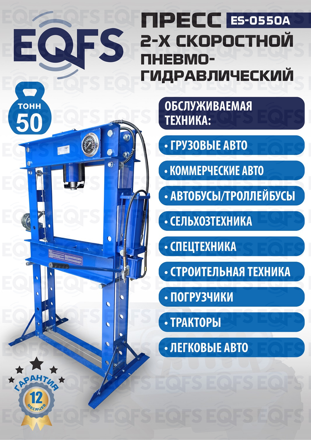 · Пресс укомплектован гидравлическим ручным насосом и пневмогидравлическим с максимальным усилием 50 тонн.