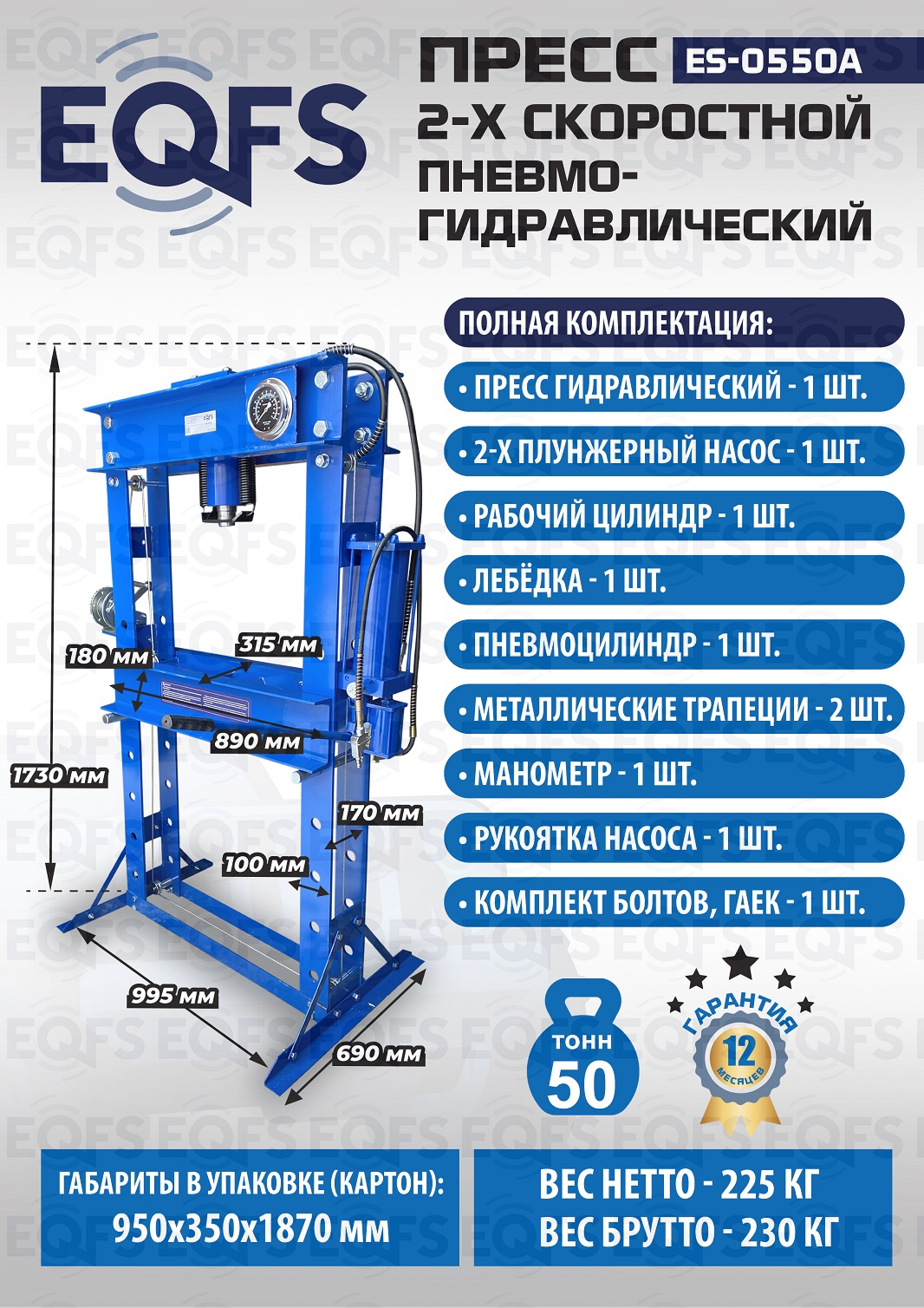 Конструктивные особенности пресс 50 тонн пневмогидравлический / ручной ES-0550A: