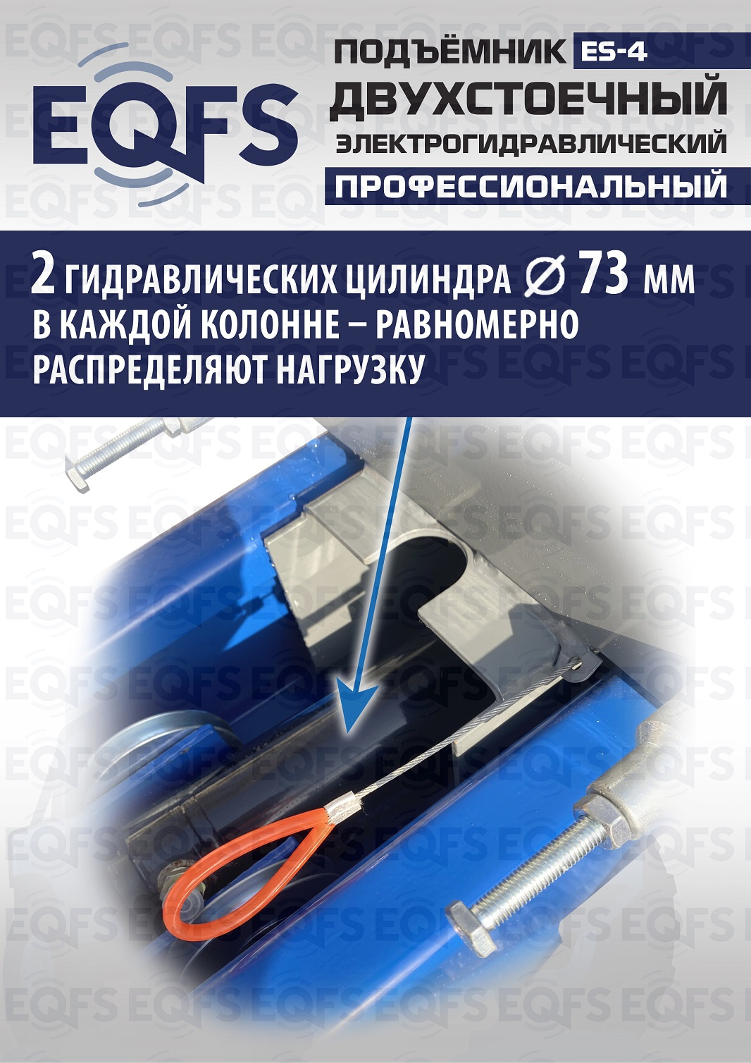 ·         Два гидравлических цилиндра, что приводит к увеличению срока службы подъемника. Нагрузка распределяется равномерно на два цилиндра.