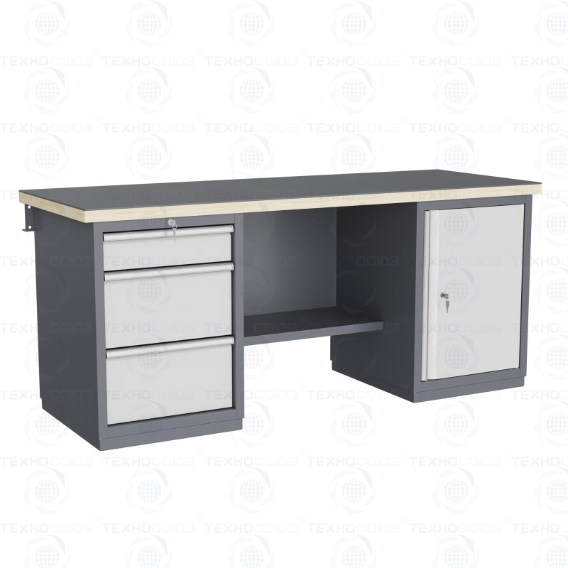 Двухтумбовый. Для выполнения тяжелых сборочных, слесарных и других видов работ на производстве, для установки в закрытых помещениях. Допустимая нагрузка на столешницу 3000 кг. Тумбы и опоры верстаков выполнены из профилированной холоднокатаной стали и имеют сварную конструкцию. На тумбы с выдвижными ящиками установлена система антиопрокидывания. В ящиках качественные усиленные шариковые направляющие полного выдвижения. Верстак покрыт ударопрочной и износостойкой порошковой краской. Для комфортной работы стоя и сидя. Размеры: 870x1993x743 мм. Поставляется в 4 комплектациях на выбор.