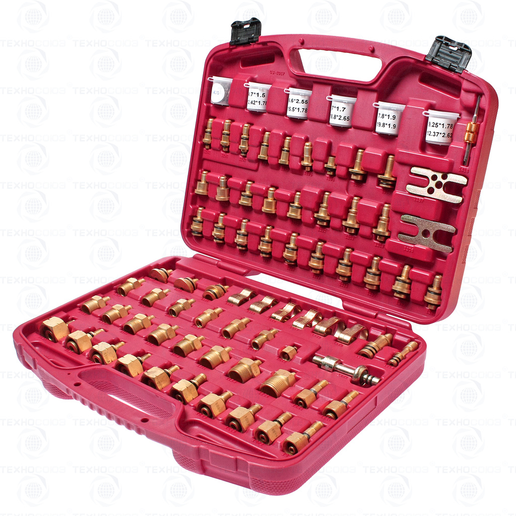 - В набор входят различные адаптеры для тестирования системы кондиционирования на предмет утечек.