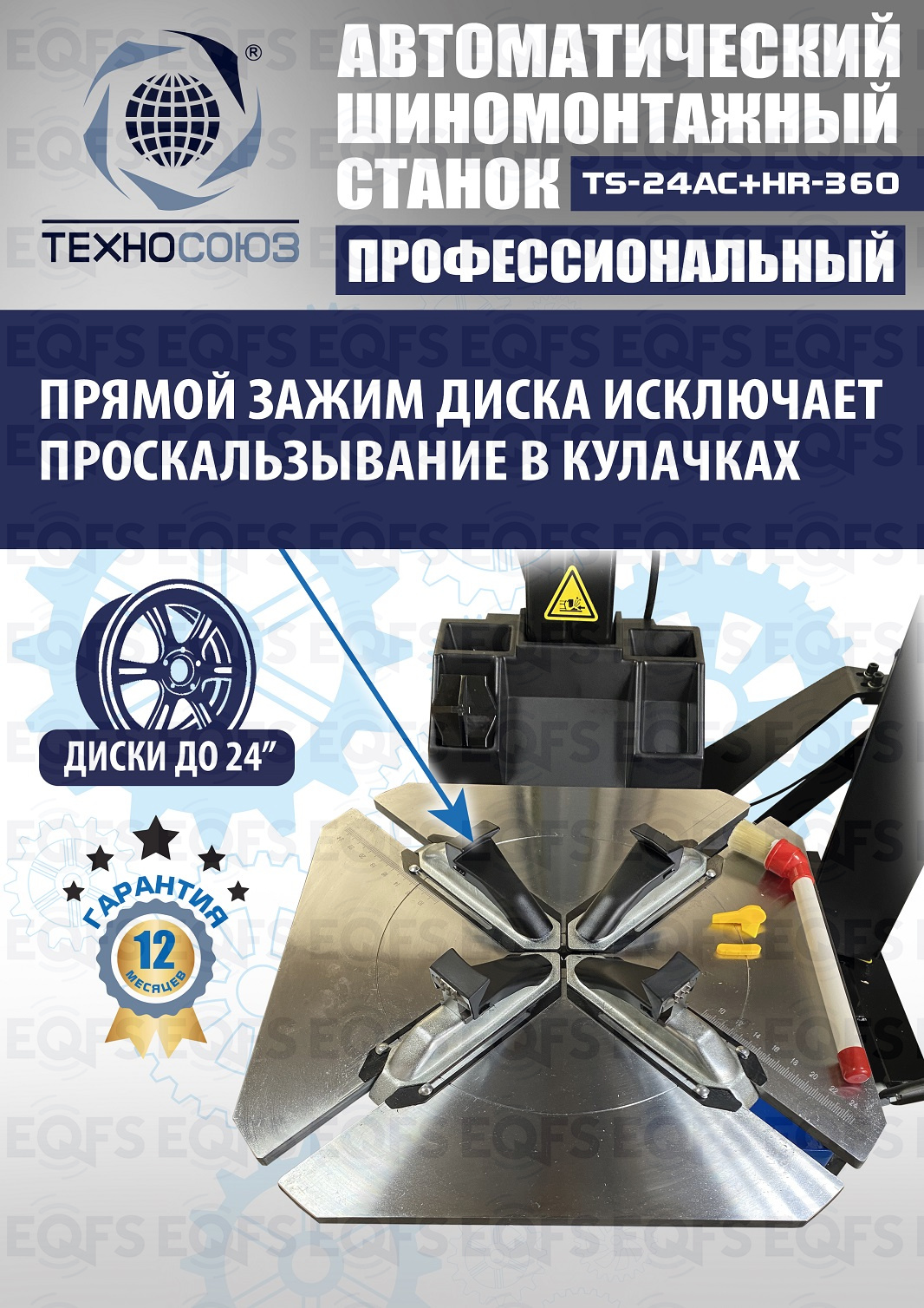 Автоматического шиномонтажного стенда TS-24AC+HR-360. В комплекте взрывная подкачка + третья рука для работы с низкопрофильными шинами и RanFlat! Для колес легковых автомобилей, легких грузовиков, микроавтобусов и коммерческой техники. Для дисков: внешний 10÷21”, внутренний 12÷24”. Напряжение 220/380В. Гарантия 18 мес. – наш монтаж, 12 мес. – самостоятельная установка.