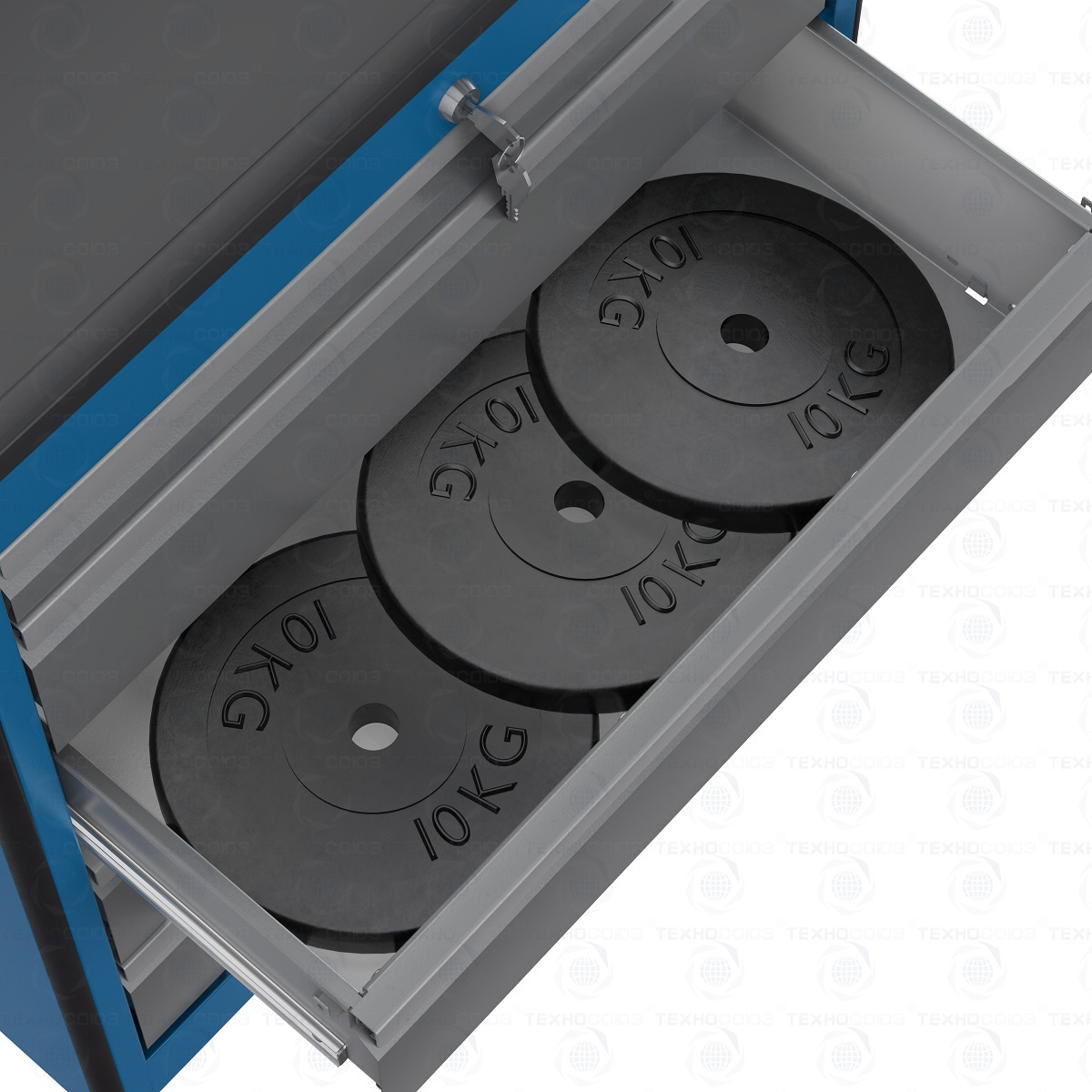 Цвет корпус - RAL5015, ящики - RAL7037, ручки ящиков - RAL9006