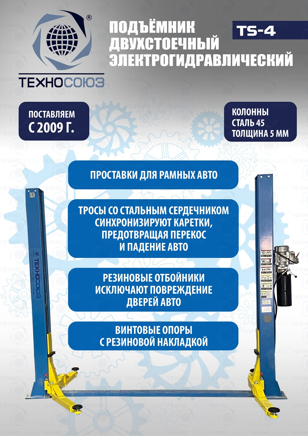 TS-4 Подъемник 2-хст., г/п 4 т, проставки, прямые лапы